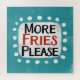 "More Fries Please" is a fun text design with a white accent shape surrounded by white whimsical textured dots.