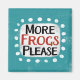 "More Frogs Please" is a fun text design with a white accent shape surrounded by white whimsical textured dots.