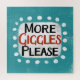 "More Giggles Please" is a fun text design with a white accent shape surrounded by white whimsical textured dots.