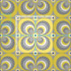 Pattern with yellow and grey circles (colours of year 2021) resembling peacocks eyes. Trendy colours to decorate your home.