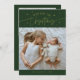 Modern Christmas theme birth announcement card featuring a typography text that says "more love this Christmas" with your newborn picture. This is a birth announcement card for the holiday seasons! Add your pictures, birth stats, and a message! The background is green.