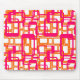 This mouse pad has a mid-century modern design of open rectangles in pink over open rectangles in orange.