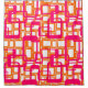 This shower curtain has a mid-century modern design of open rectangles in pink over open rectangles in orange.
