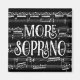 A neat More Soprano design featuring chalkboard effect with musical notation sheet music background in black and white.