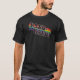 I give wanted to give this a 4 instead of a 5 because these Basic DARK T0shirts run unexpectedly SLIM or Narrow. Which is great if you do not have a potbelly, but I have a paunch. It isn't the shirt's fault that I've got a beer belly. The design and shirt itself is a quality cotton shirt. The color is more of a deep purple, but still a very pretty color. The Basic DARK T-shirts run a bit SLIMMER than the Basic Ts. The neck is a fraction narrower (or seems to be narrower) also. I'm a paunchy middle-aged woman and my neck is 12 inches (31cm) thick and the neckline fell about the same as in the photo of the man, and I had the desire to tug it a bit. So if you're a thick necked man or like loose shirts, be aware these are slimmer shirts. Once I get rid of my lockdown paunch it'll look great. The shirt washed well in cold water with no apparent bleeding. We don't have a dryer, so it hung dry. Did not shrink. Love the colors and the design. The design looks smaller on my shirt than it does on the model on-line. But still, it looks good on the shirt. The printing looks as it does on the model, just the size seems fractionally smaller. Washed garment in cold water, hung dry and design appeared unaffected.