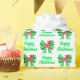 Morkie dog silhouette in with red Christmas paper abstract pattern and green bow on a white background. Replace the Happy Christmas with anything you like. Perfect cute XMas dog paper for pet gifts.