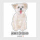 A sticker with a cute image of a Morkie dog. The image and text can be pesonalized. Original artwork by W.B.
