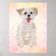 The image on this product displays Biscuit, a cute little Morkie. Biscuit is a designer dog -- a cross between the Maltese and the Yorkshire Terrier dog breeds. Very energetic, playful, sweet and smart, she's a great companion dog and lots of fun to have around. She apparently doesn't know her size as she tries to go after any dog, big or small, if she thinks they pose a threat to her owner.