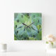 Do you love the great outdoors? Check out this custom 10.75" square acrylic wall clock sporting a close-up photograph of an unopened Sunflower bud nestled in lush green leaves with glistening morning dew. Check out the two round style and sizes you might prefer.