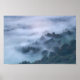 Mysterious early morning fog rolling through the valley and trees on a cold autumn day.