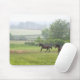 Photograph of a Standardbred Horses running and playing in the early morning through fields or pastures, displayed on a Mousepad.