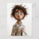 A whimsical and relatable illustration of a dishevelled man in a bathrobe clutching a cup of coffee with wide, tired eyes. His messy hair and bewildered expression perfectly capture the chaos of early mornings before caffeine takes effect.