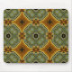 Mouse pad with "Morning Market" by Susan Wallace. Copyright © 2009, Susan Wallace. Frilled flower shapes alternate with geometric crosses in this cheerful symmetric pattern of yellow, orange, green and blue.