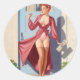 Morning Newspaper Pin-Up Girl Classic Round Sticker