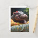 "Morning Snuggles: Baby Hippo Wakes in Basket, Postcard