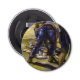 Very cute and compact little bottle opener. Also very fond of the magnet, both for sticking to the fridge and holding on to the bottle cap when trying to open it. Good quality print. As pictured.