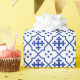 A decorative, symmetrical blue repeating tiled pattern influenced by Middle-Eastern geometry, by Nick Rumbelow.