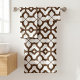 This bath towel set features a sophisticated Moroccan-inspired geometric lattice design in a warm chocolate brown and creamy white color palette. The bold, boho-chic quatrefoil pattern adds a modern yet timeless touch to any master or guest bathroom decor. Elevate your daily routine or surprise a new homeowner with this stylish and functional bathroom accessory.