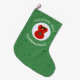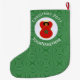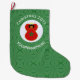 Large Stocking with a Christmas decor angel dressed in the flag of Morocco. She flies in the centre of a white circle of squiggly squares, surrounded by a background of green squiggly squares. Change the ?? to the year you wish to customise. Personalise by adding a name. Words show in white. Designed to honour your Moroccan heritage during the Christmas holiday season.
