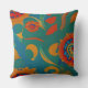 Moroccan gold red orange teal blue leaf Mandela Cushion