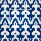 Moroccan inspired damask pattern of interlocking positive / negative fleur-de-lis shapes with a striated, Ikat woven texture - deep cobalt blue and white fabric