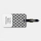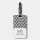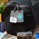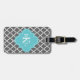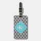Show you style with a simple, cute, modern and trendy Moroccan quatrefoil, lattice or clover shape pattern design Travel Luggage Tag that is custom monogram with your first, middle and last name initials in a preppy font on one side and name, phone number, address on the other side. Click the 'customise it' button to personalise your gift by adding your own initials. Choose your own font and colours, to make it your own. This stylish and trendy luggage tage will make a great gift for yourself or someone you love. Perfect for Christmas, Birthdays or any occasion. Dark Grey and white colour background with an accent Teal Quatrefoil and white initial.