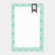 Cute and trendy seafoam green Moroccan quatrefoils design notepad sticky notes with personalised monogram letter on a cute grey flag.