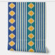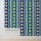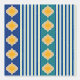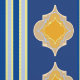 Elegant mix of yellow Moroccan shapes on blue or green plus blue stripes