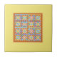 Moroccan style geometric pattern in pink. teal, terracotta, yellow and blue on light yellow