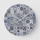 Moroccan tile black,blue,grey round clock
