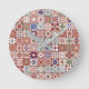 Moroccan tile - burgundy and blue round clock