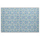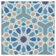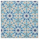 A symmetrical Moroccan pattern consisting of a mosaic of blue shades.