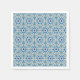 A symmetrical Moroccan pattern consisting of a mosaic of blue shades.