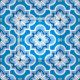 Mixed media digital rendition of a classic Moroccan tile pattern fabric - Light sky blue, cobalt blue, and white on a cerulean blue background