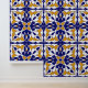 Moroccan Tile Pattern Blue Yellow Shaped Bohemian Wallpaper