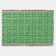 Throw blanket in a Moroccan inspired tile pattern - dark pine green with a light green background