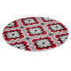 Mixed media digital rendition of a classic Moroccan tile pattern - Deep Chinese red, black and white on a medium grey / grey background