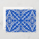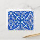 Moroccan inspired tile pattern postcard with a polished, ceramic look - cobalt blue with a white background