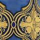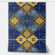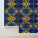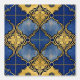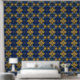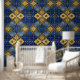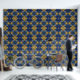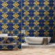 This wallpaper showcases a royal blue and gold Moroccan tile design with intricate scrollwork and gilded accents. The symmetrical motif reflects Moorish architectural influences, creating a look that is both ornate and structured. The deep blue background contrasts with rich gold detailing for a striking, decorative aesthetic. Perfect for those drawn to Moroccan and Mediterranean style, maximalist interiors, and richly detailed patterns that add depth and elegance to walls. Ideal for an eclectic living room accent wall, or a focal wall in a boho bedroom. Imagine this in a space with a fireplace, glimmering in the firelight!
