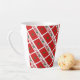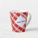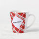 Latte mug has a tiled design featuring the Moroccan Flag with the word, MOROCCO, beneath. A white fractal of squiggly squares holds a spot for your name, to add a personalised touch or a customised gift. The flag is red with a green pentagram.