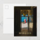 Keep the enchanting soul of Morocco with this atmospheric postcard featuring a sunlit view of a medina street seen from a cool riad interior. The composition beautifully contrasts traditional architecture with the vibrant daily life of the streets beyond the arched doorway. This authentic photo print is perfect for travel lovers, cultural enthusiasts, or as a unique piece of wall art.