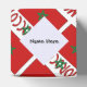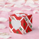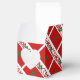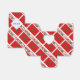 Tiled on a diagonal, the Moroccan Flag shows with the word MOROCCO, below, in the colours of the flag. A white space of textured squiggly squares holds a space for your name. Create a personalised favour box for your family reunion or a customised one for a bon voyage party. The flag is red with a star in the centre.