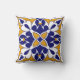 Morocco Square Tile Yellow Blue Bohemian Pattern Cushion