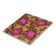 Large ceramic tile in a vintage William Morris floral damask pattern of anemone flowers and leaves, digitally enhanced and coloured - light coffee brown leaves, and flowers in shades of deep fuchsia and coral pink on a dark chocolate brown background