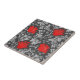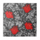 Large ceramic tile in a vintage William Morris floral damask pattern of anemone flowers and leaves, digitally enhanced and coloured - light silver grey / grey leaves, and flowers in shades of deep lipstick red on a dark graphite grey background