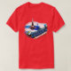 I give wanted to give this a 4 instead of a 5 because these Basic DARK T0shirts run unexpectedly SLIM or Narrow. Which is great if you do not have a potbelly, but I have a paunch. It isn't the shirt's fault that I've got a beer belly. The design and shirt itself is a quality cotton shirt. The color is more of a deep purple, but still a very pretty color. The Basic DARK T-shirts run a bit SLIMMER than the Basic Ts. The neck is a fraction narrower (or seems to be narrower) also. I'm a paunchy middle-aged woman and my neck is 12 inches (31cm) thick and the neckline fell about the same as in the photo of the man, and I had the desire to tug it a bit. So if you're a thick necked man or like loose shirts, be aware these are slimmer shirts. Once I get rid of my lockdown paunch it'll look great. The shirt washed well in cold water with no apparent bleeding. We don't have a dryer, so it hung dry. Did not shrink. Love the colors and the design. The design looks smaller on my shirt than it does on the model on-line. But still, it looks good on the shirt. The printing looks as it does on the model, just the size seems fractionally smaller.  Washed garment in cold water, hung dry and design appeared unaffected.