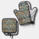 Morris - Strawberry Thief Bird & Floral Pattern Oven Mitt & Pot Holder Set
