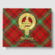 Clan Morrison crest badge surrounded by a strap and buckle over red tartan background. Custom front, back and spine text.