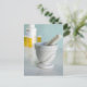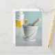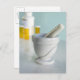 Mortar and pestle, pill bottles in background postcard
