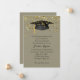 Black mortar cap and a golden confetti on a dark grayish yellow background Graduation Announcement flat card.